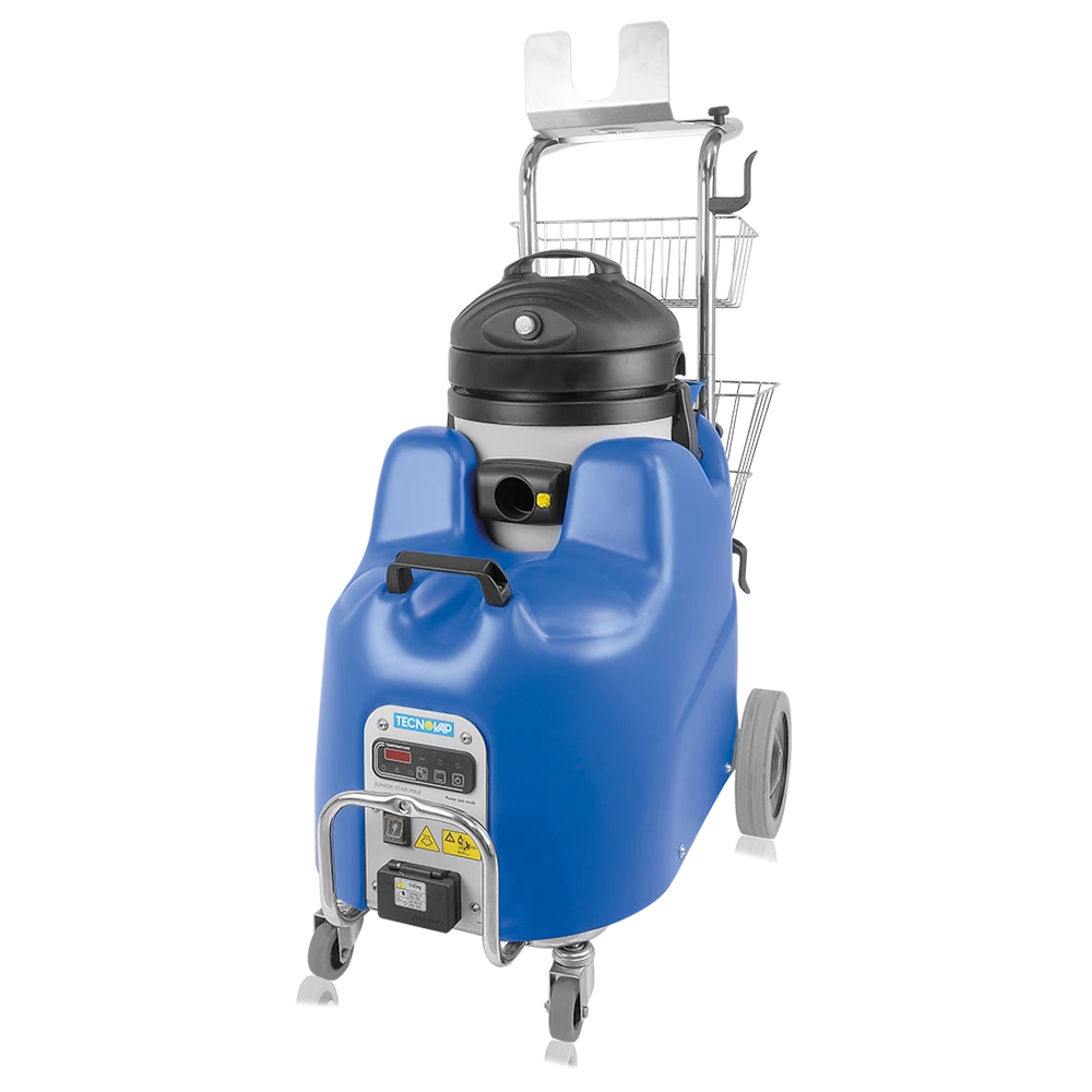 Opremljen je s sesalnikom za mokro in suho sesanje, kjer delovanje (nivo tekočine) nadzoruje varnostni plovec.